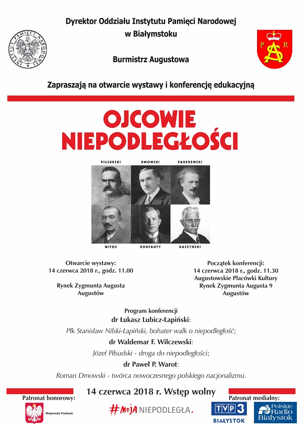 Wśród bohaterów wystawy jest artysta, są dyplomaci, żołnierze i politycy, a także działacze społeczni. Reprezentowali różne poglądy polityczne, różnili się przynależnością społeczną i religią, urodzili się pod różnymi zaborami. Mimo to potrafili zjednoczyć się wokół jednego, nadrzędnego celu: NIEPODLEGŁOŚCI. Nie oznaczało to, że we wszystkim byli zgodni i we wszystkim wzorowo współdziałali. Pozostali wierni własnym poglądom, ale wykorzystując sprzyjające warunki zewnętrzne, poprowadzili Polaków ku WOLNOŚCI.